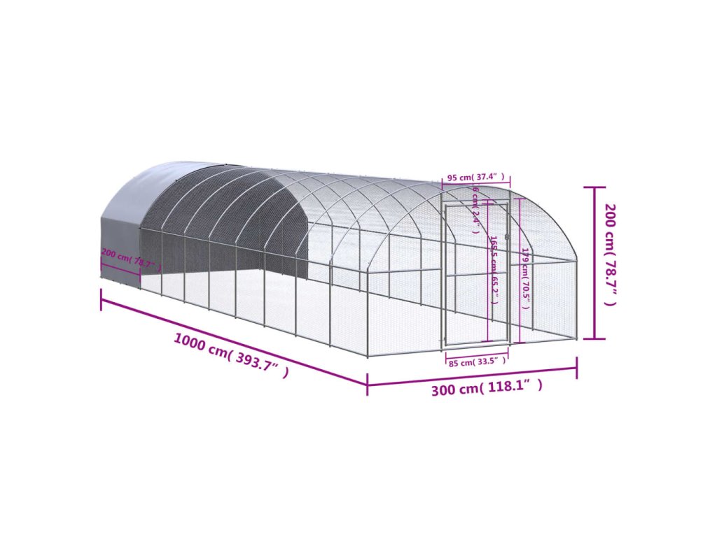 Venkovní klec pro kuřata 3 x 8 x 2 m pozinkovaná ocel 3095475