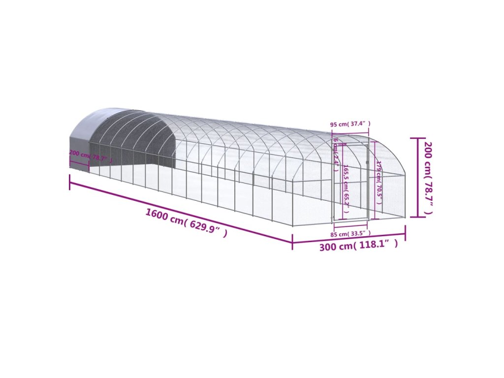 Venkovní klec pro kuřata 3 x 16 x 2 m pozinkovaná ocel 3095478