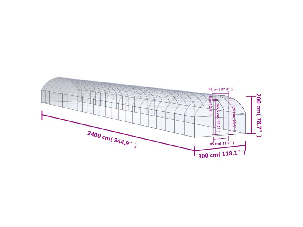 Venkovní klec pro kuřata 3 x 24 x 2 m pozinkovaná ocel 3095471