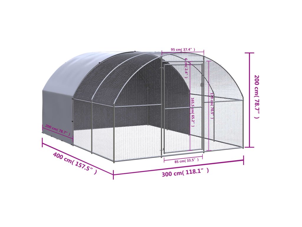 Venkovní klec pro kuřata 3 x 4 x 2 m pozinkovaná ocel 3095473
