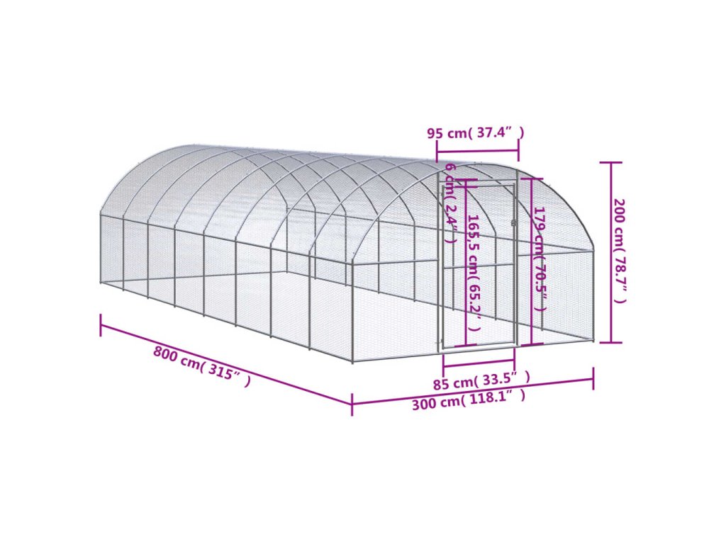 Venkovní klec pro kuřata 3 x 8 x 2 m pozinkovaná ocel 3095466