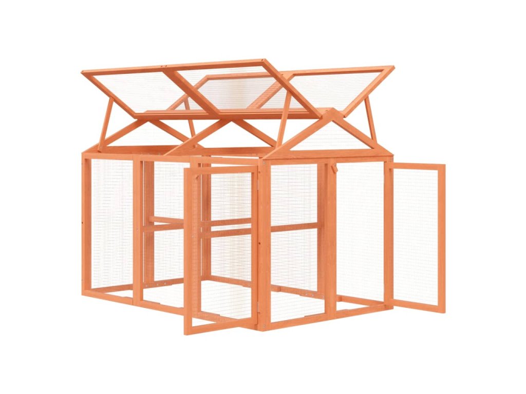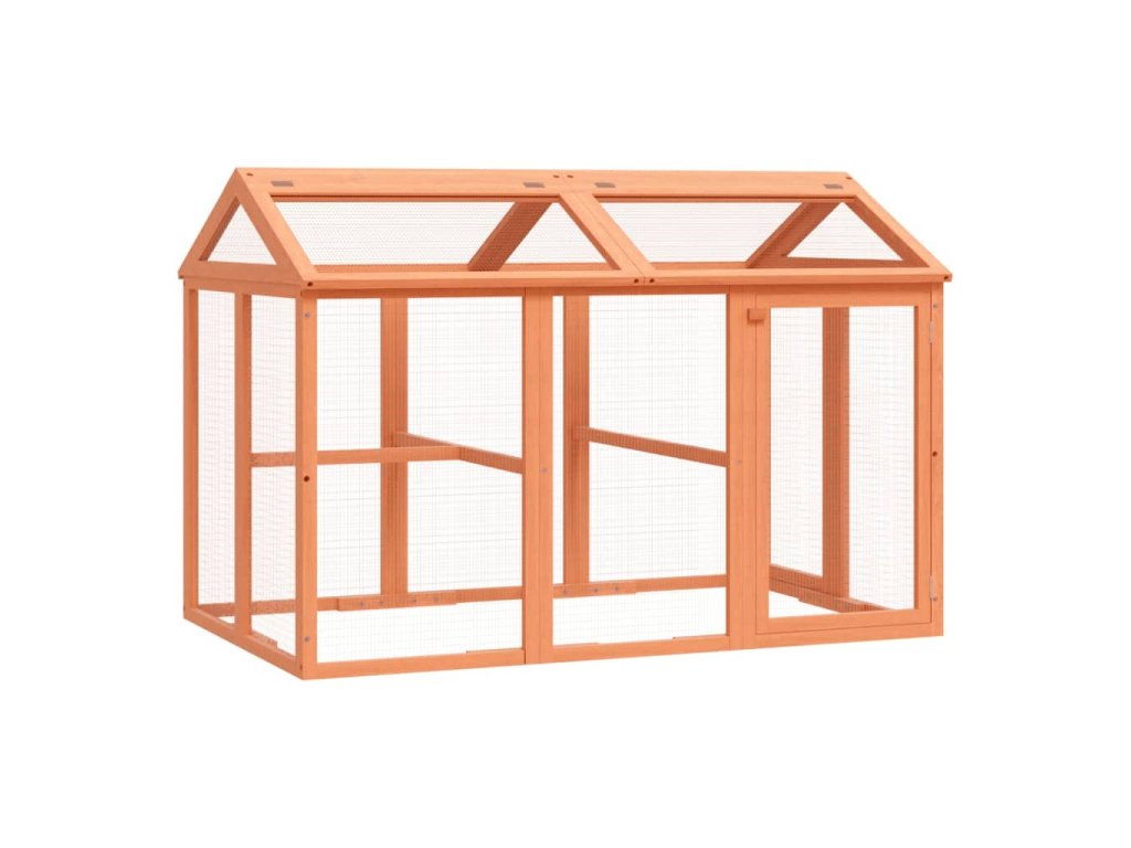 - Snadné čištění: Střecha a boční dvířka venkovní voliéry se hladce otevírají, což usnadňuje čištění.