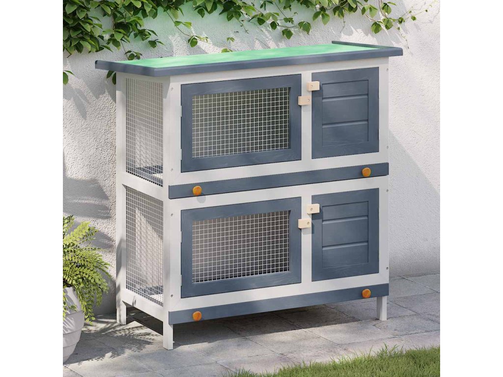 Zahradní králíkárna 4 dvířka šedá dřevěná 170834