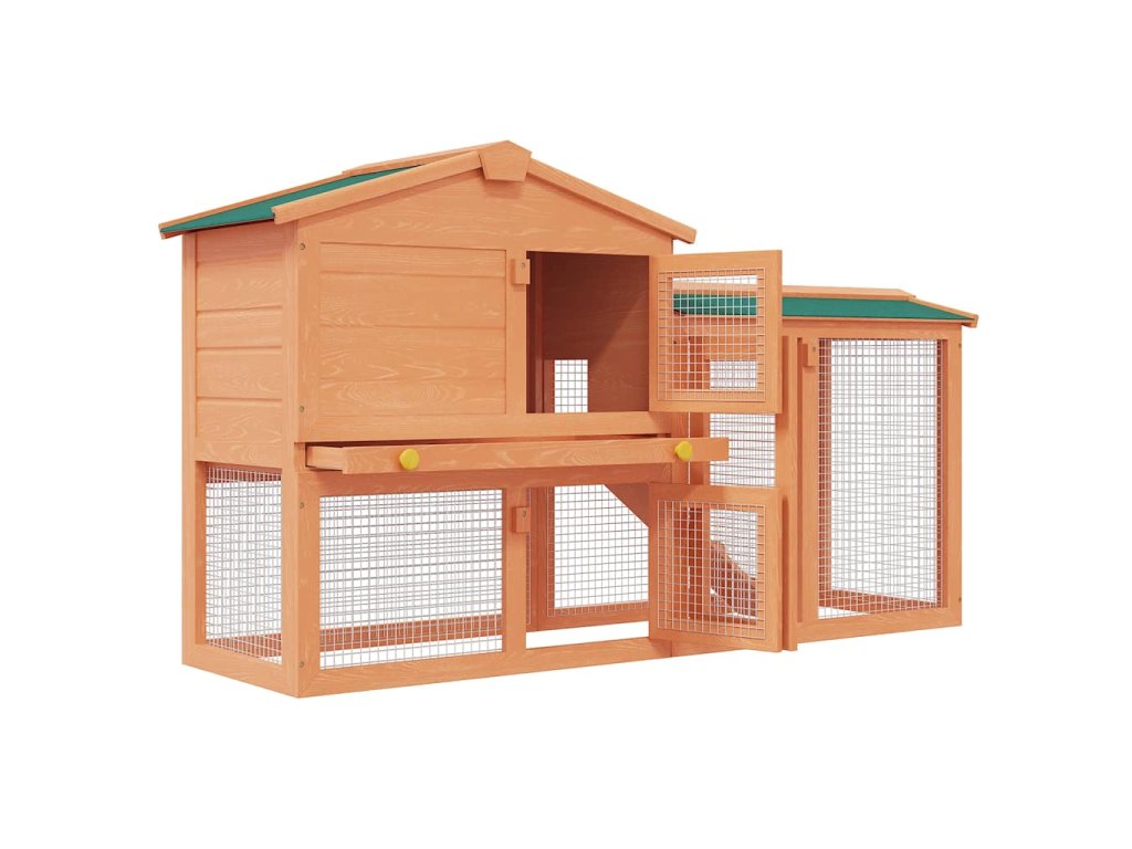 Tato prostorná dřevěná králíkárna je ideální pro malá domácí zvířata.