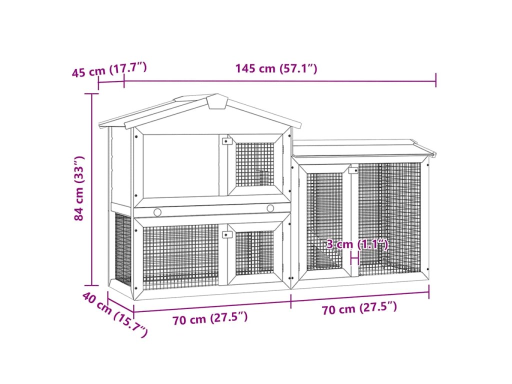 Tato kvalitní dvoupatrová králíkárna poskytuje velké útulné místo pro chov malých zvířat, zejména roztomilých králíčků. Má několik způsobů využití: hraní, pohyb, trénink nebo bezpečný pobyt vašich zvířat.