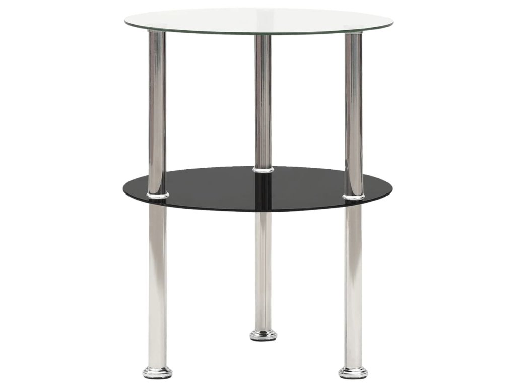 2patrový odkládací stolek průhledný a černý 38 cm tvrzené sklo 322788