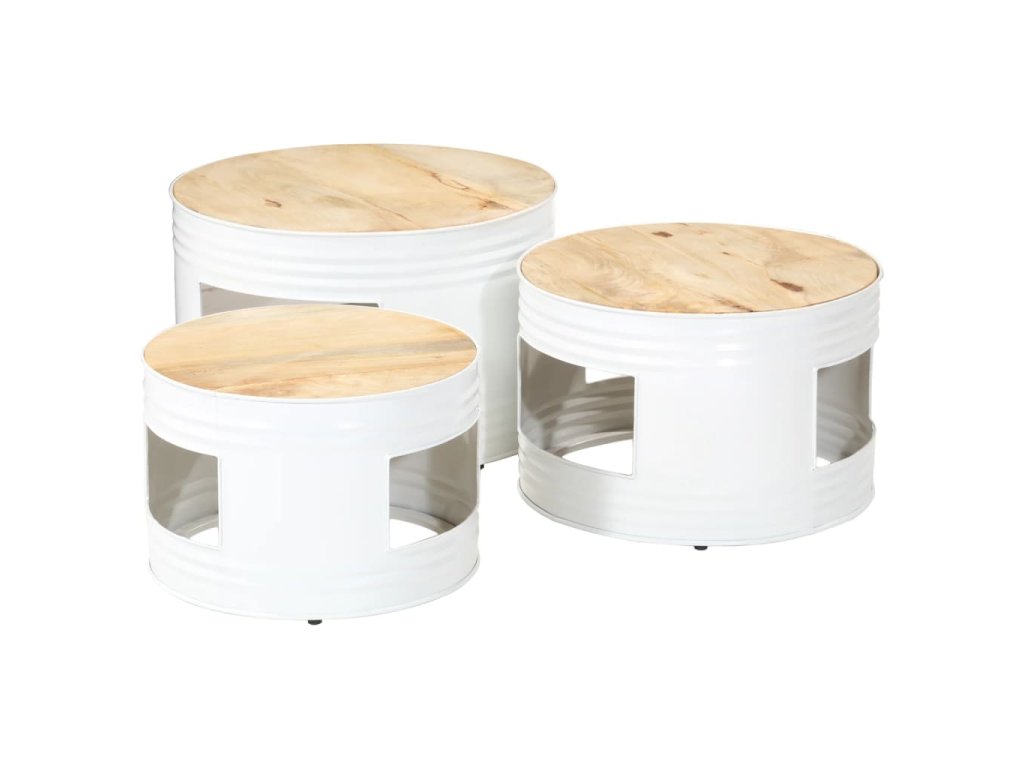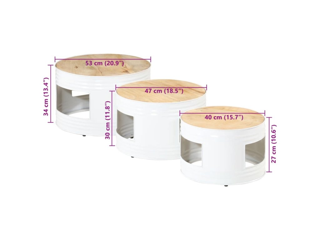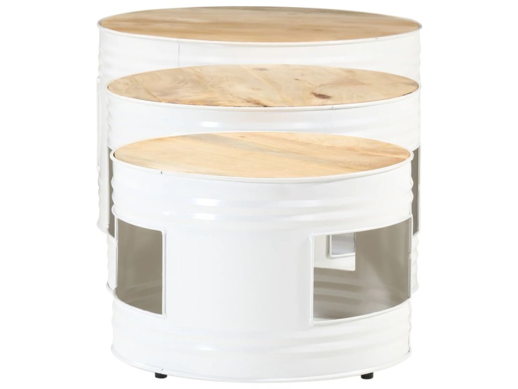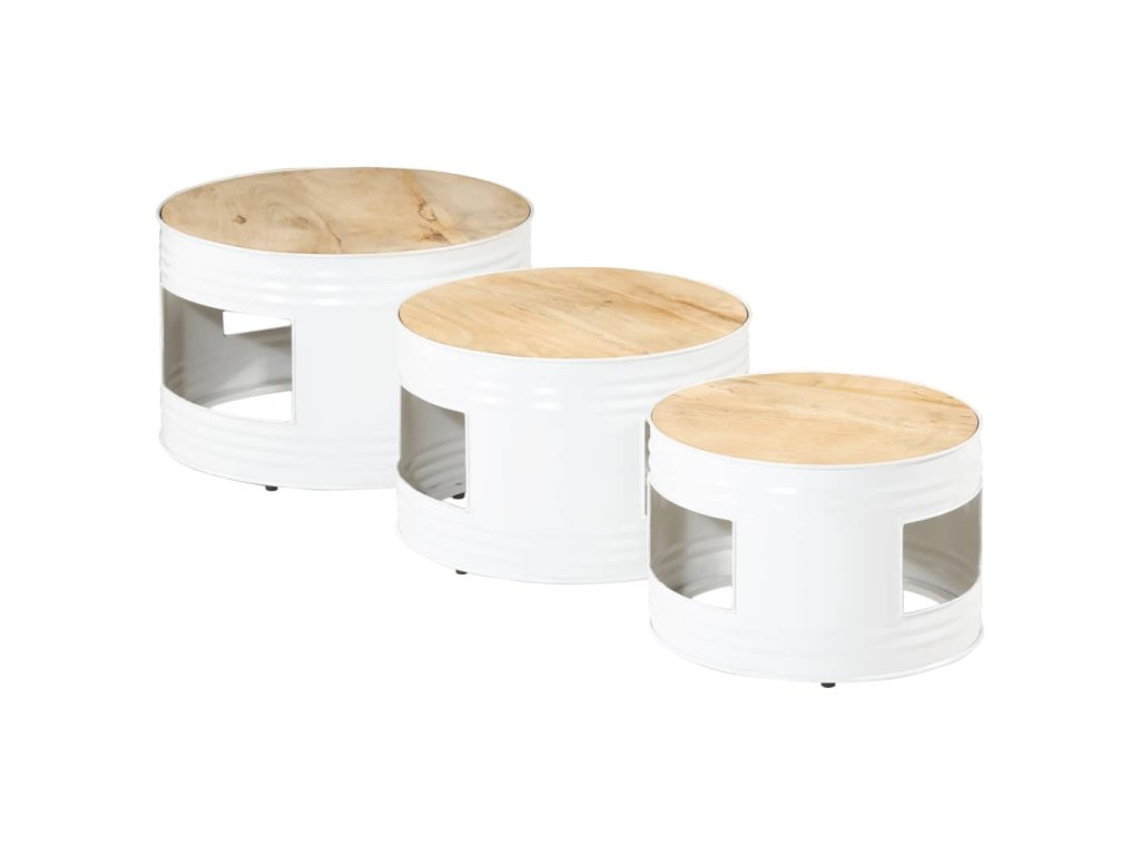 Barové stolky ve tvaru bubnu 3 ks hrubé mangovníkové dřevo 358934