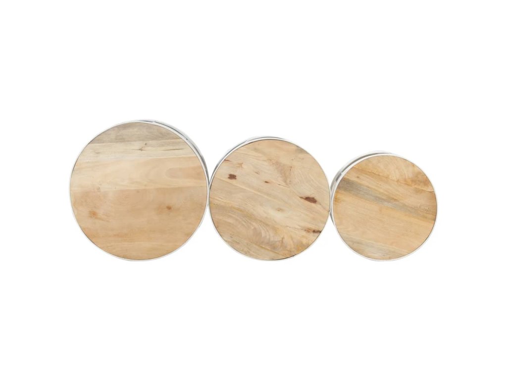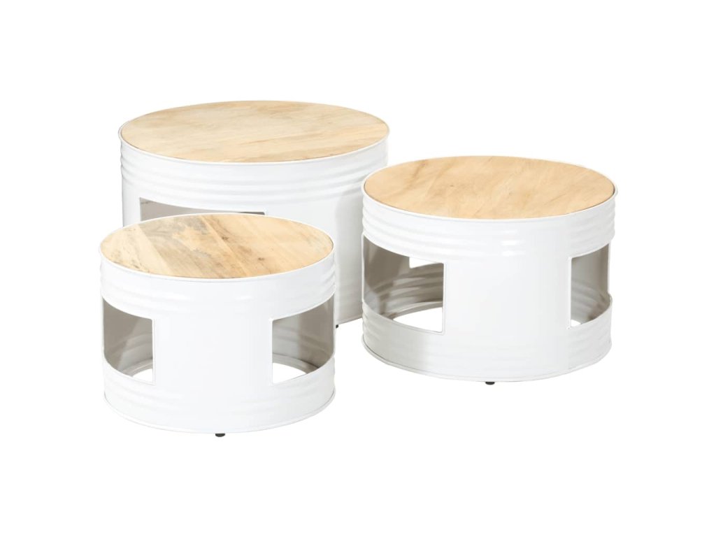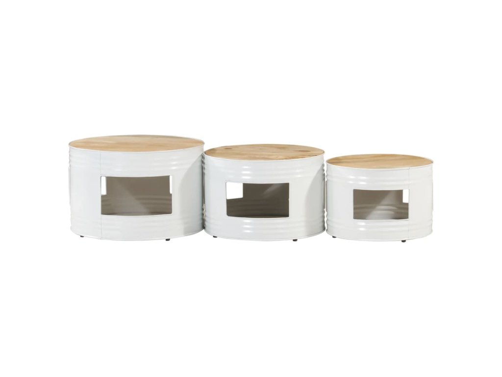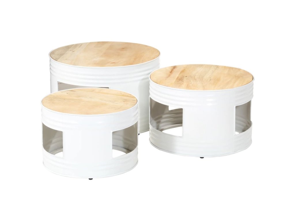 Barové stolky ve tvaru bubnu 3 ks hrubé mangovníkové dřevo 358934