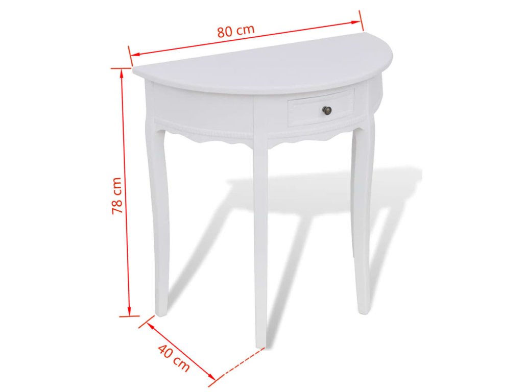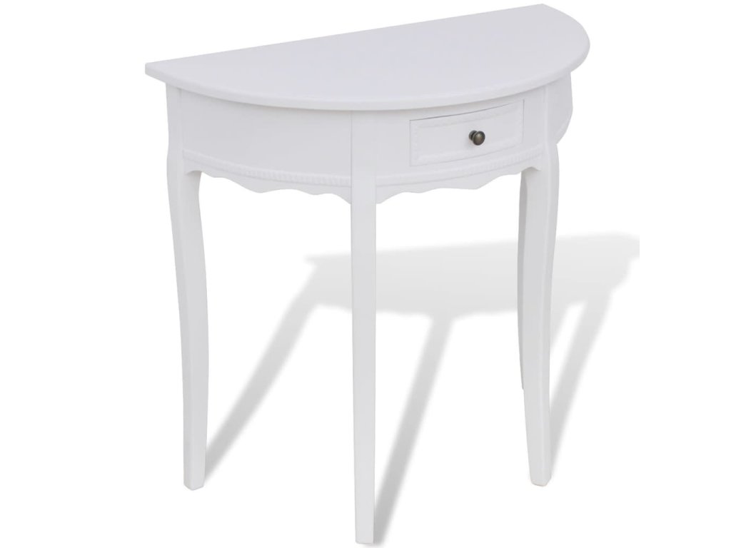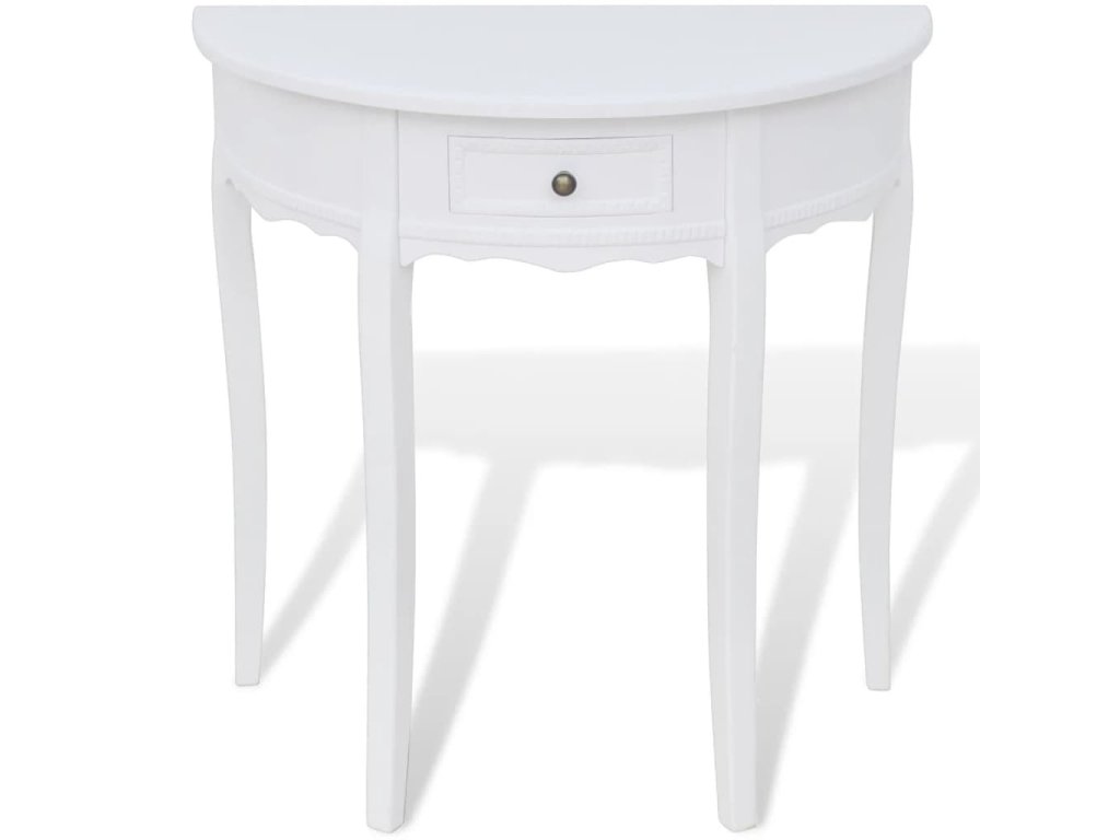 Bílý půlkruhový konzolový stolek se zásuvkou 241530