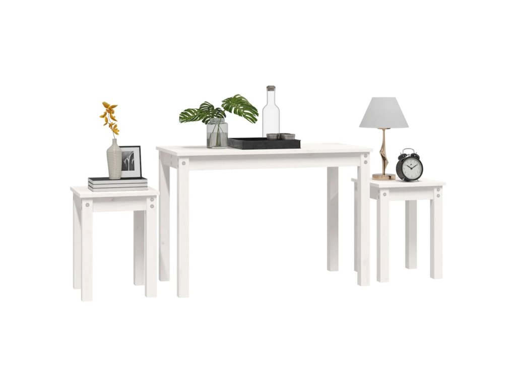 Hnízdové stolky 3 ks bílé masivní borové dřevo 824979