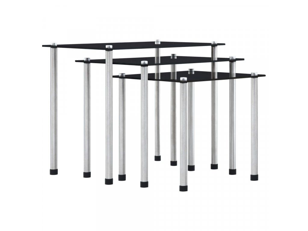 Hnízdové stolky 3 ks černé tvrzené sklo 249527