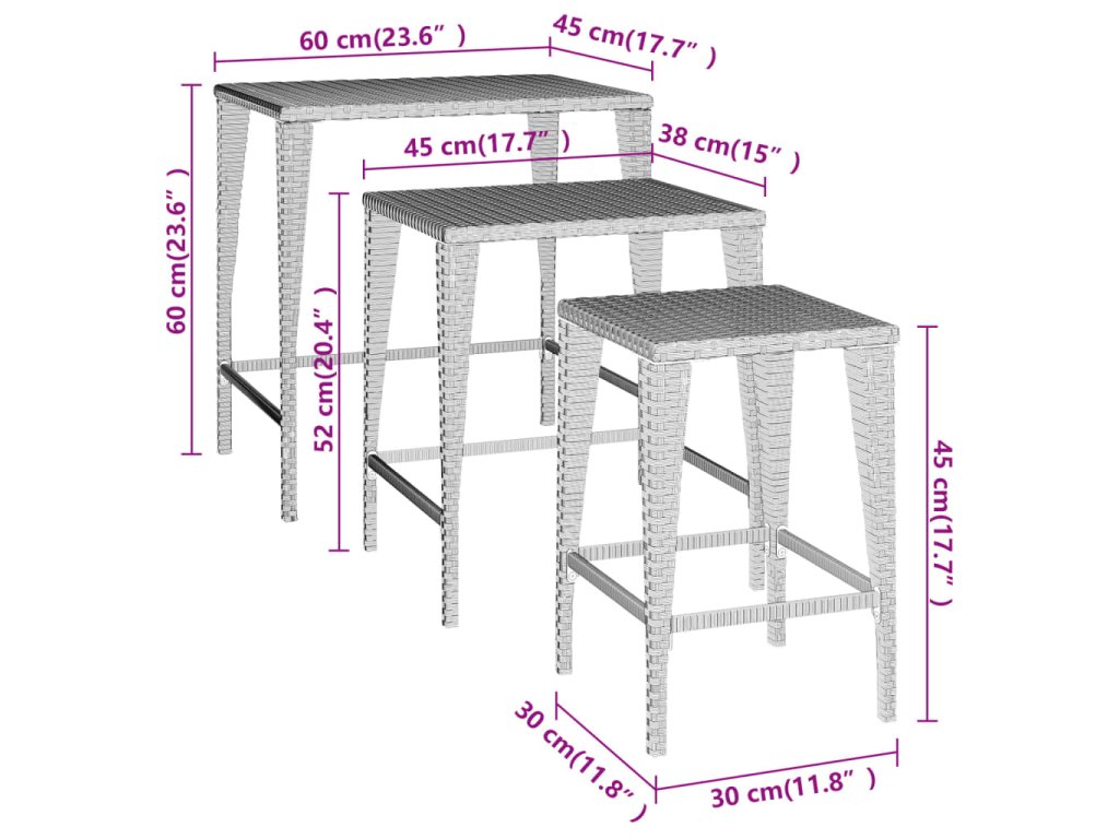 Hnízdové stolky 3 ks hnědé polyratan 319385