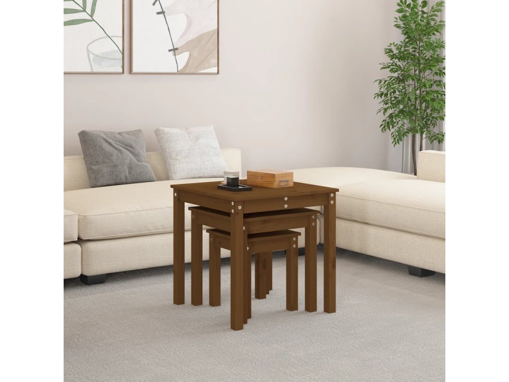 Hnízdové stolky 3 ks medově hnědé masivní borové dřevo 824976