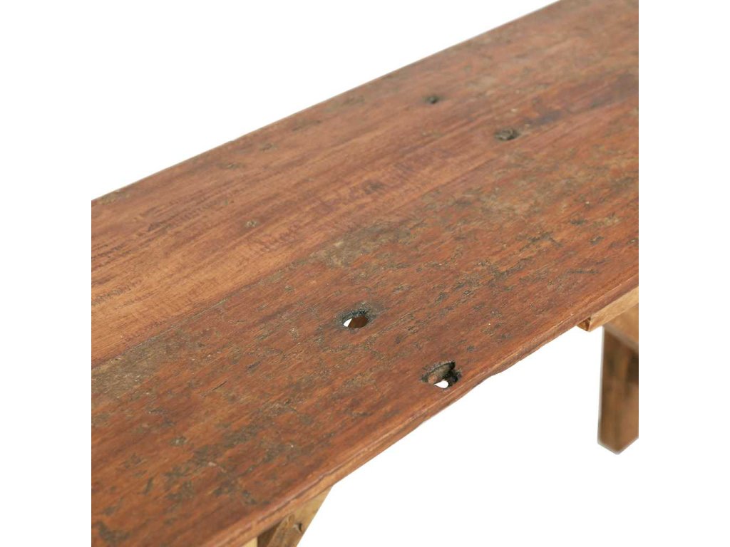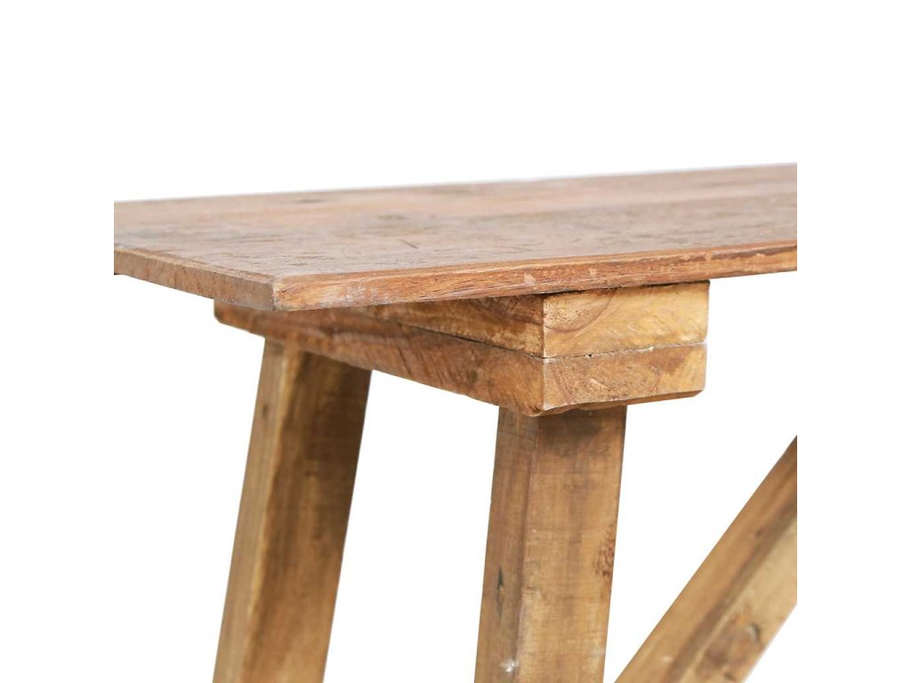 Stolek do předsíně ve starožitném stylu je vyrobený z masivního recyklovaného dřeva, které pochází z padlých stromů, dřevěných částí vozů a lodí a z trámů, podlah a podpěrných nosníků ze starých budov určených k demolici. Obsahuje tedy celou řadu různých druhů dřeva, jako jsou mahagon, borovice, teak, buk, dub, cedr, mangovník, akácie atd. Recyklované dřevo tak nabývá vlastností všech těchto rozličných typů dřevin a může se stát, že v něm najdete hřebíky, šrouby, dutiny či jiné nedokonalosti. Právě tyto drobné nedostatky však vypovídají o jeho bohaté historii a dodávají mu autentický a hřejivý vzhled. Sestavení konzolového stolku je snadné.
