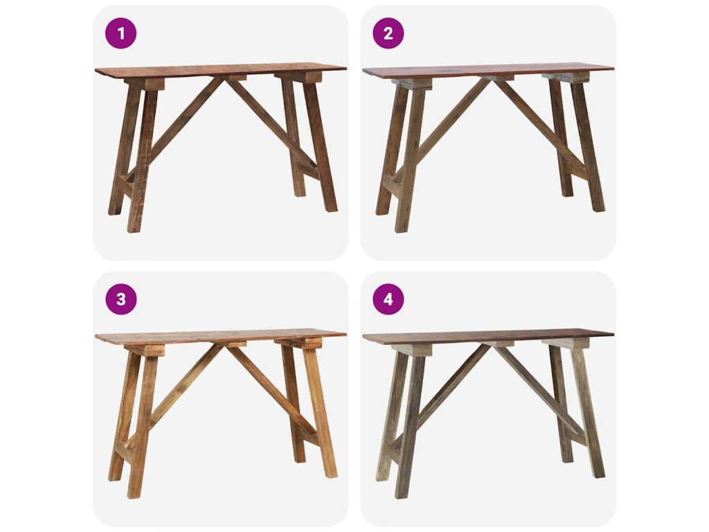 Důležité upozornění: Kresba a odstíny dřeva se mohou lišit kus od kusu, a proto je každý z našich konzolových stolků zcela jedinečný. Výběr kusu k dodání je náhodný, což zajišťuje exkluzivitu a individualitu vašeho produktu.