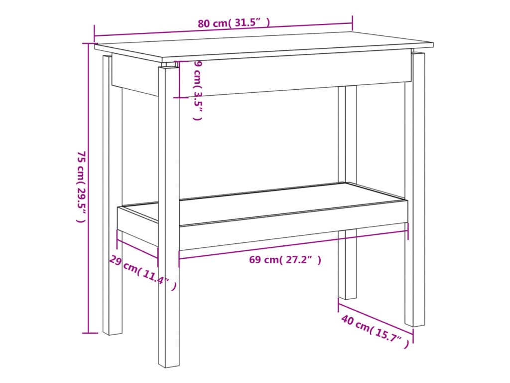 Konzolový stolek 80 x 40 x 75 cm masivní borové dřevo 814304