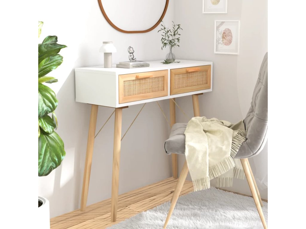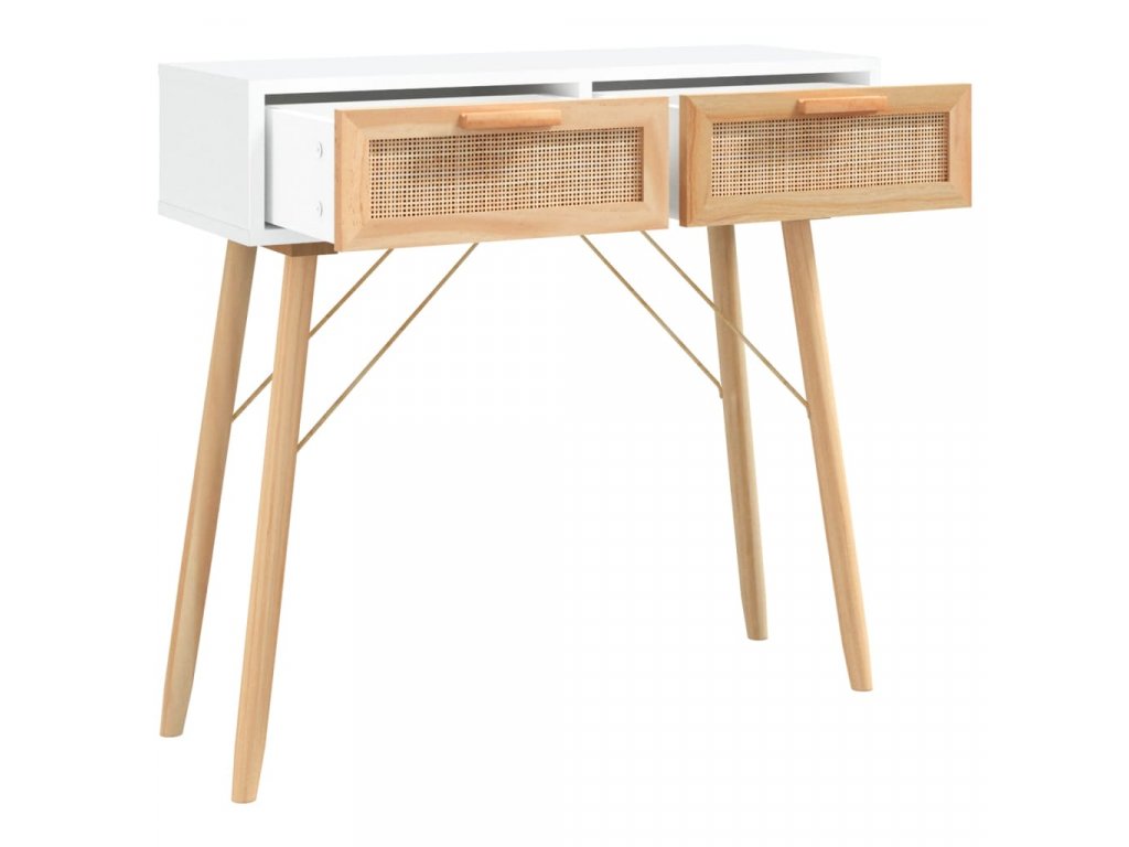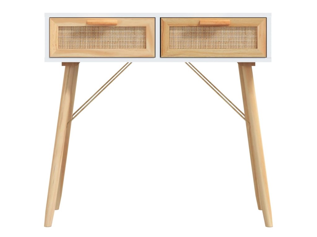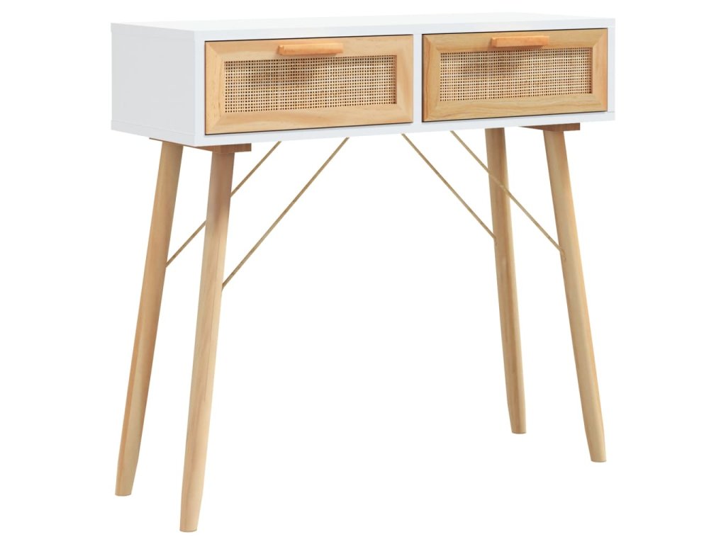 Konzolový stolek bílý 80 x 30 x 75 cm borovice a přírodní ratan 345624