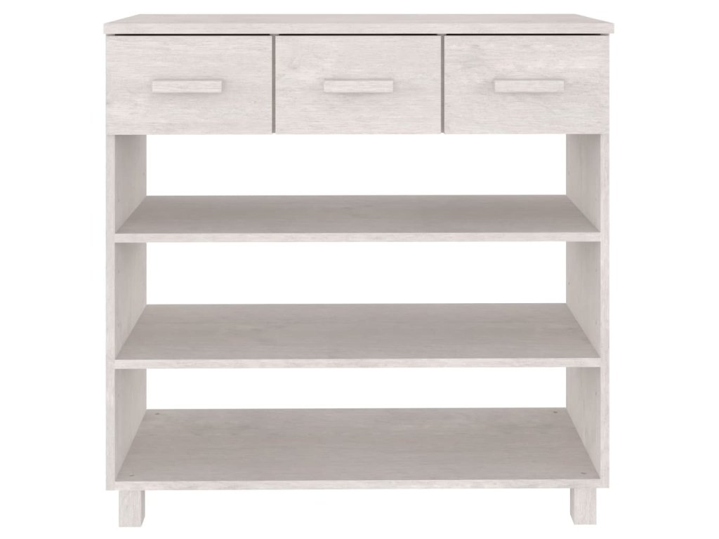 Tento předsíňový stolek je vyroben z masivního borového dřeva, takže je stabilní a odolný. Obsahuje 3 police a 3 hladce výsuvné zásuvky, které vám poskytnou spoustu prostoru pro přehledné uložení různých každodenních nezbytností. Robustní stolní deska je navíc ideální pro vystavení dekorativních předmětů, fotorámečků a pokojových rostlin.