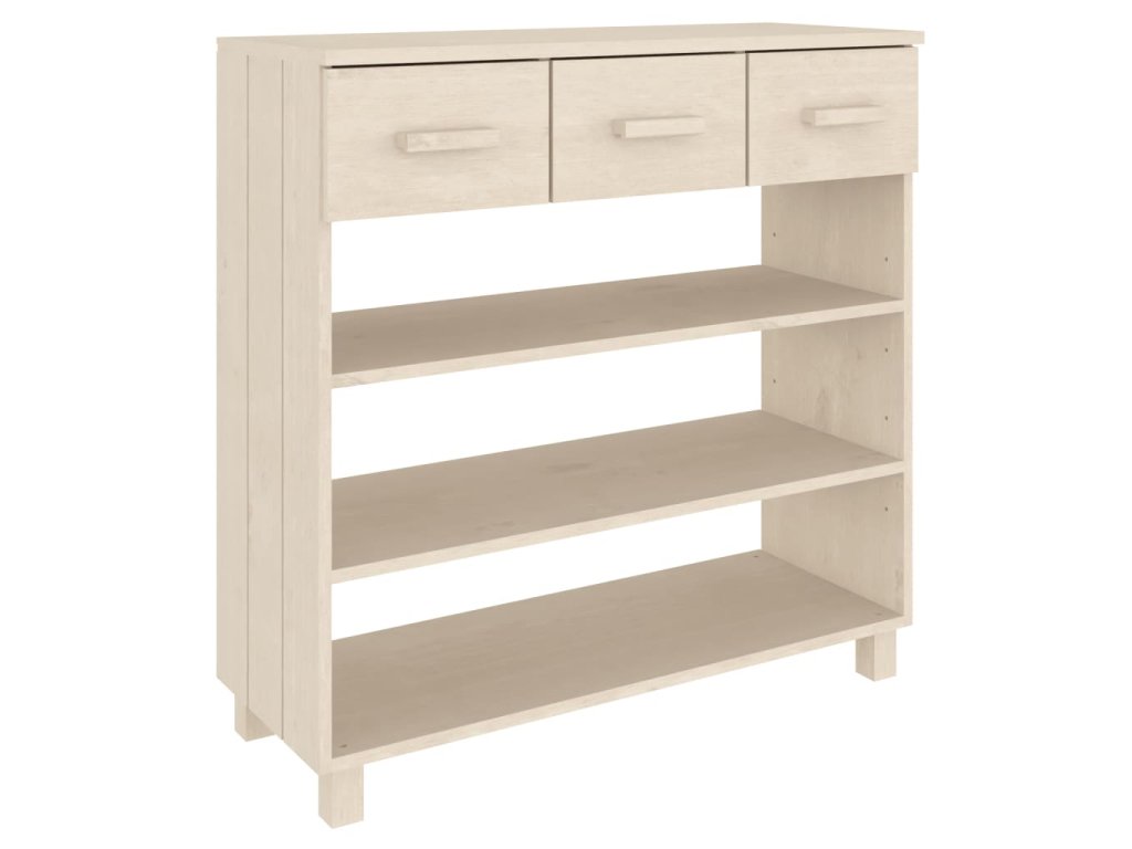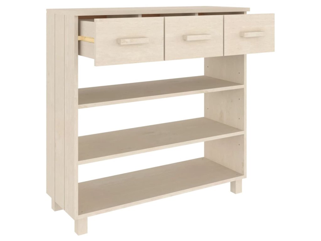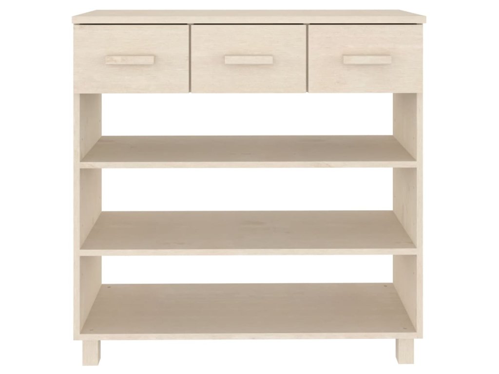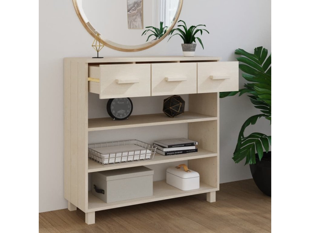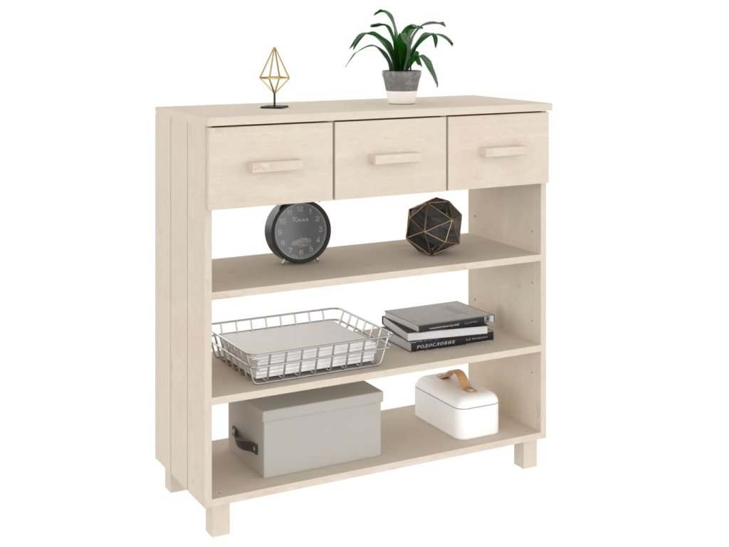 Tento předsíňový stolek je vyroben z masivního borového dřeva, takže je stabilní a odolný. Obsahuje 3 police a 3 hladce výsuvné zásuvky, které vám poskytnou spoustu prostoru pro přehledné uložení různých každodenních nezbytností, které tak budete mít neustále po ruce. Robustní horní deska je ideální pro vystavení dekorativních předmětů, fotorámečků nebo pokojových rostlin.