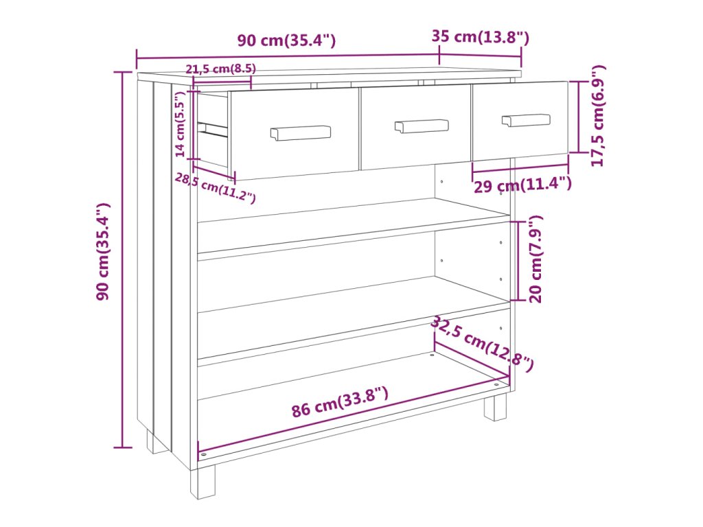 - Celkové rozměry: 90 x 35 x 90 cm (Š x H x V)