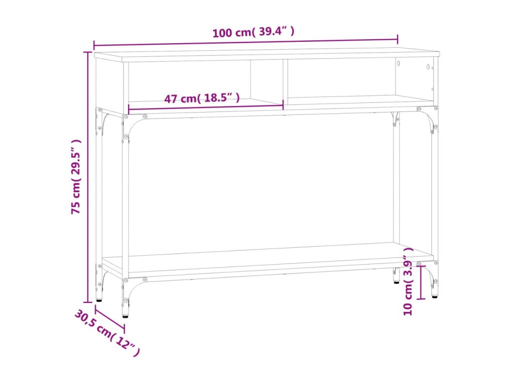 - Robustní stolní deska: Robustní deska tohoto stolku do předsíně je ideální k vystavení zarámovaných fotografií, rostlin v květináčích a jiných dekorativních předmětů.