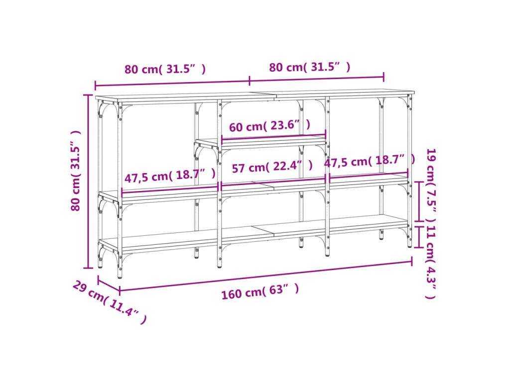 Konzolový stolek kouřový dub 160 x 29 x 80 cm kompozitní dřevo 839065