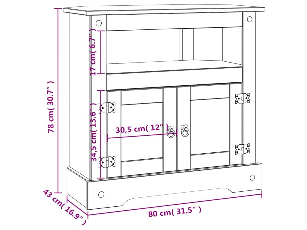 Tato vysoce kvalitní odkládací skříňka je zhotovená v mexickém stylu Corona. Navoskované borové dřevo vyzařuje rustikální mexický šarm, i proto je tento stolek skvělým doplňkem do vašeho obývacího pokoje. Je na něj také možné umístit televizi nebo hi-fi soupravu.
