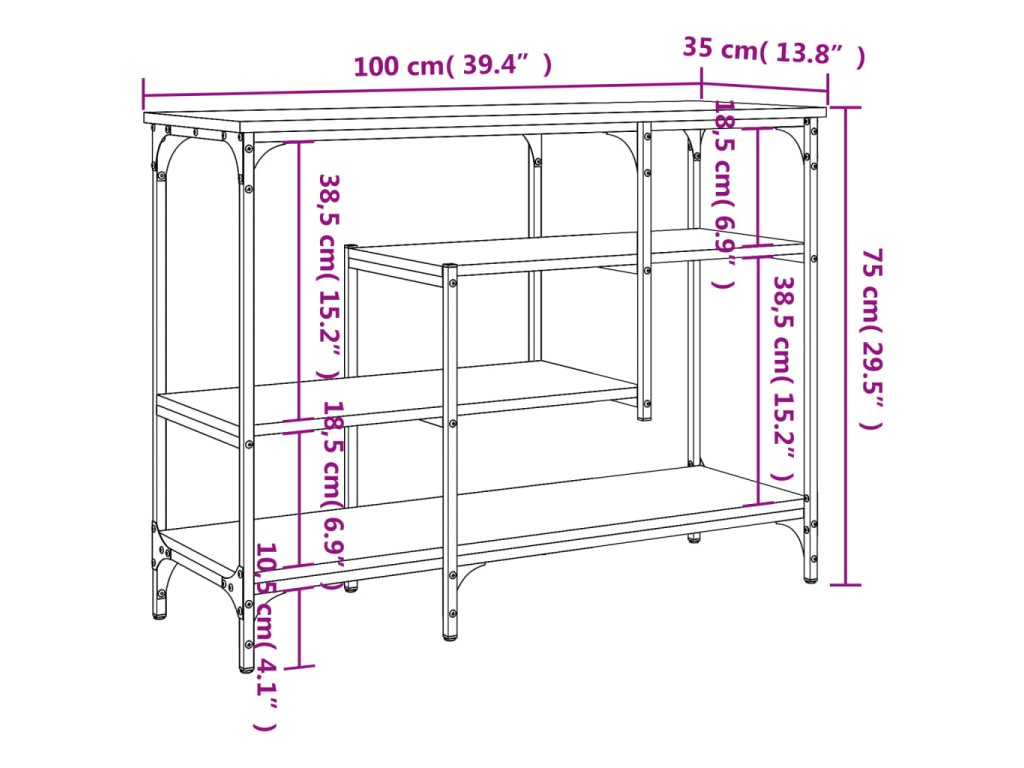 Konzolový stolek s policemi šedý sonoma 100 x 35 x 75 cm 837790