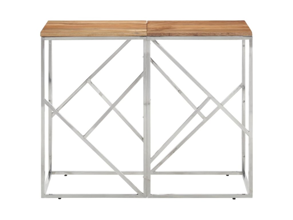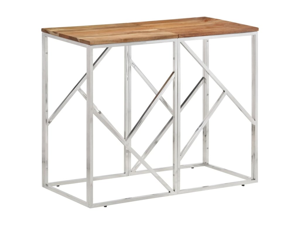 Konzolový stůl stříbrný nerezová ocel a masivní akáciové dřevo 349991