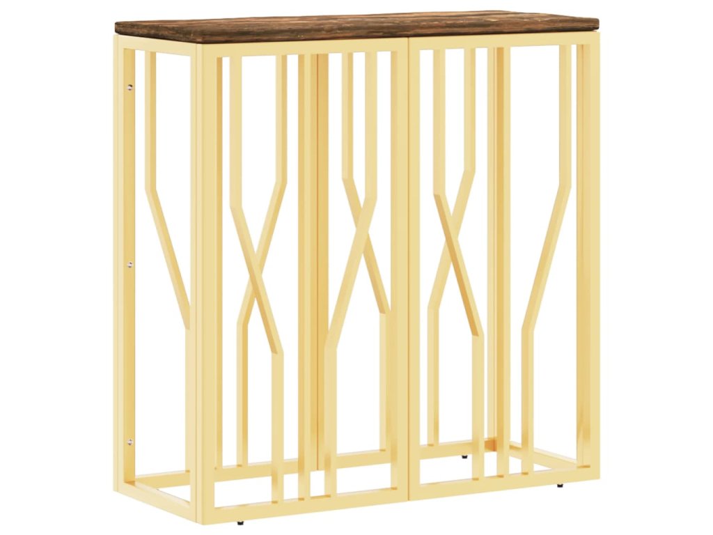 Konzolový stůl zlatý nerezová ocel a masivní recyklované dřevo 350038