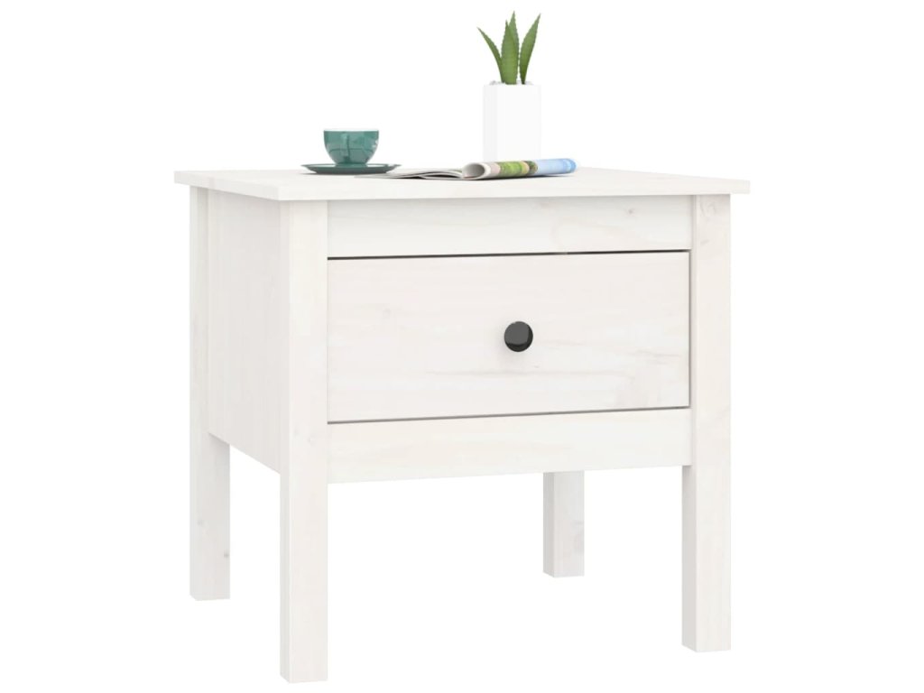 Odkládací stolek bílý 50 x 50 x 49 cm masivní borovice 813796