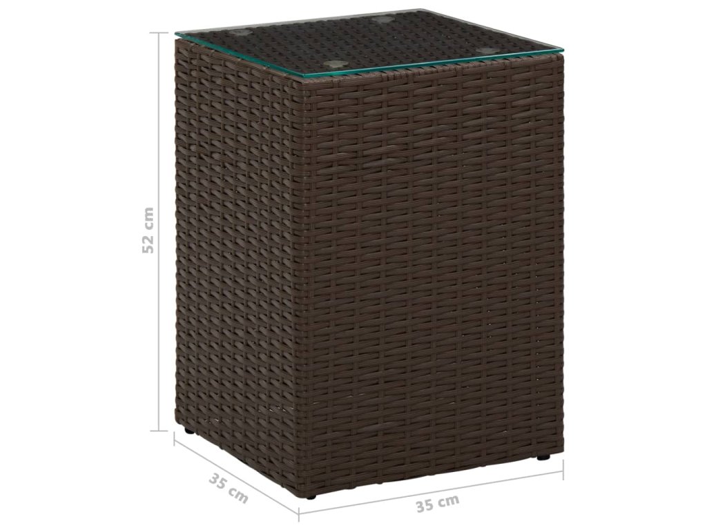 Odkládací stolek se skleněnou deskou hnědý 35x35x52cm polyratan 316377