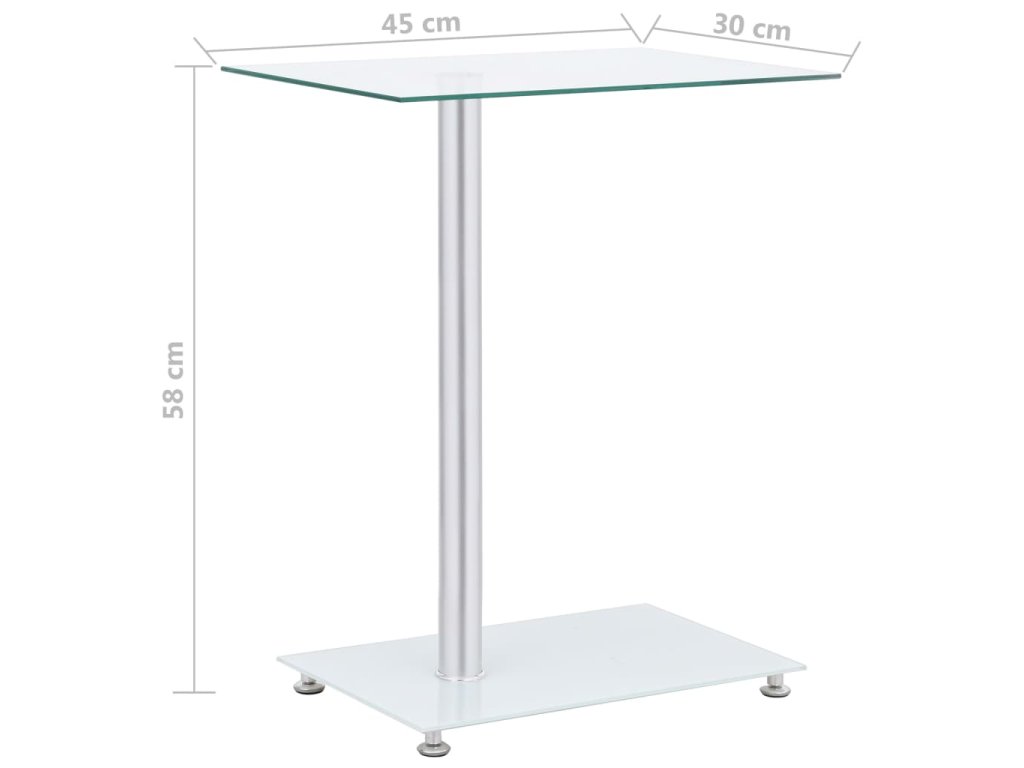 Koncový stolek má stolní desku z tvrzeného skla, a proto je mimořádně robustní a stabilní. Skleněný stůl se snadno čistí vlhkým hadříkem. Chytrý design umožňuje zasunout podstavec pod pohovku nebo postel, takže budete mít vše potřebné hezky po ruce.