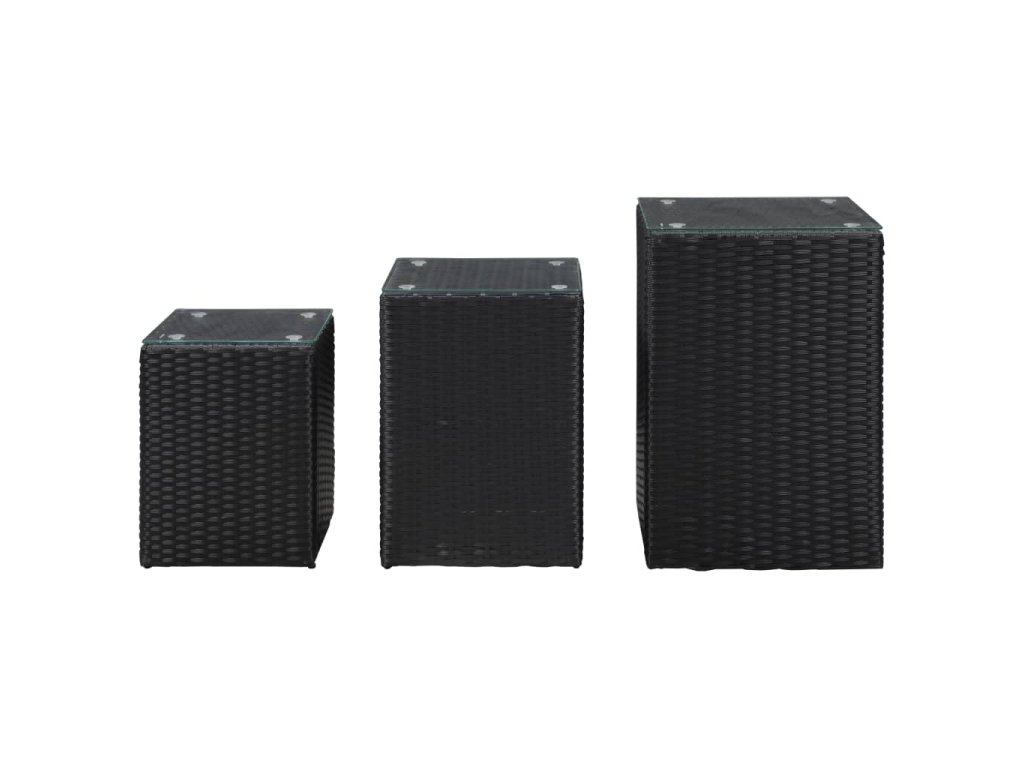 Odkládací stolky 3 ks se skleněnou deskou černé polyratan 46984