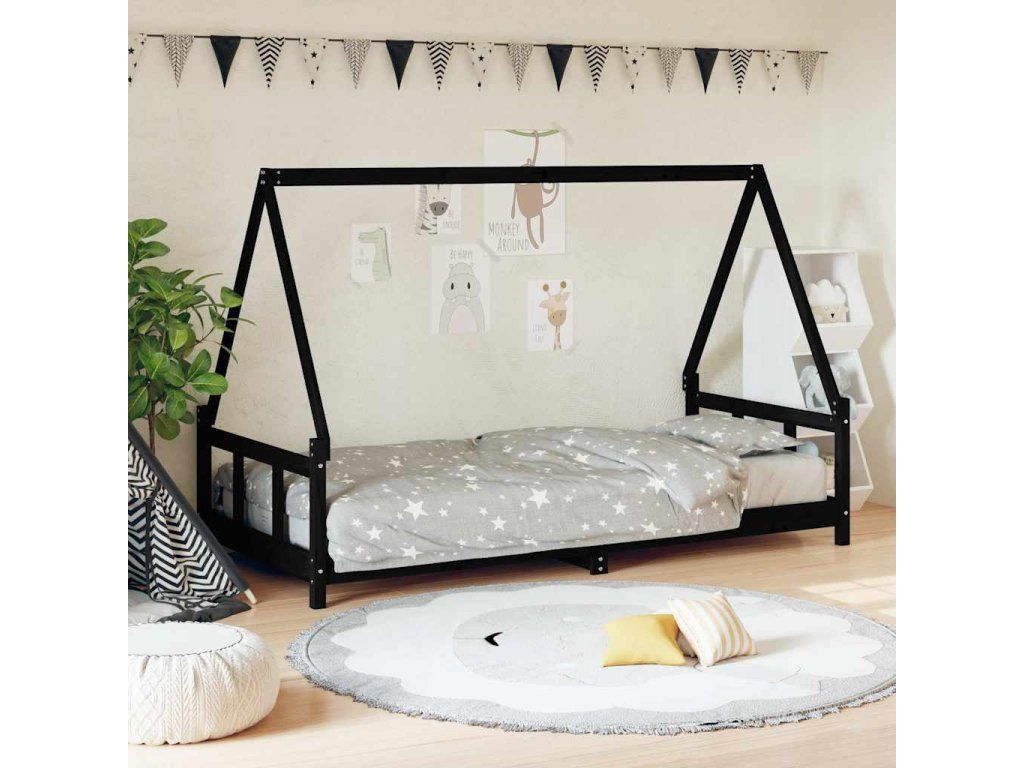 Dětská postel černá 90 x 200 cm masivní borové dřevo 834455