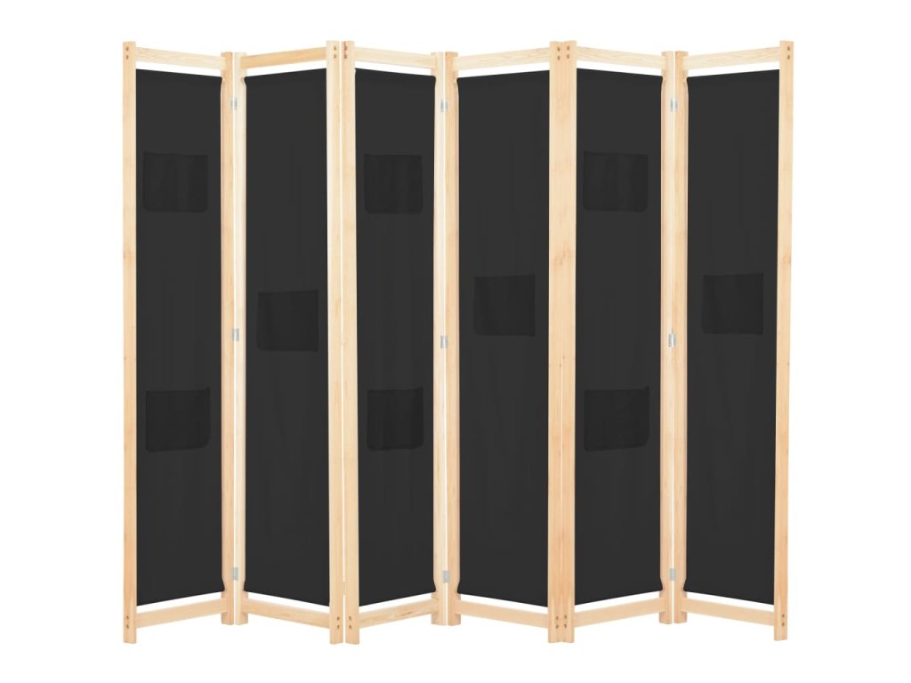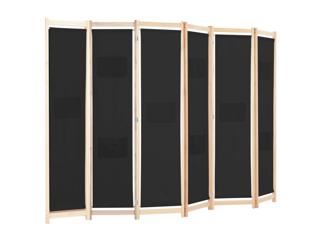 6dílný paraván černý 240 x 170 x 4 cm textil 248186