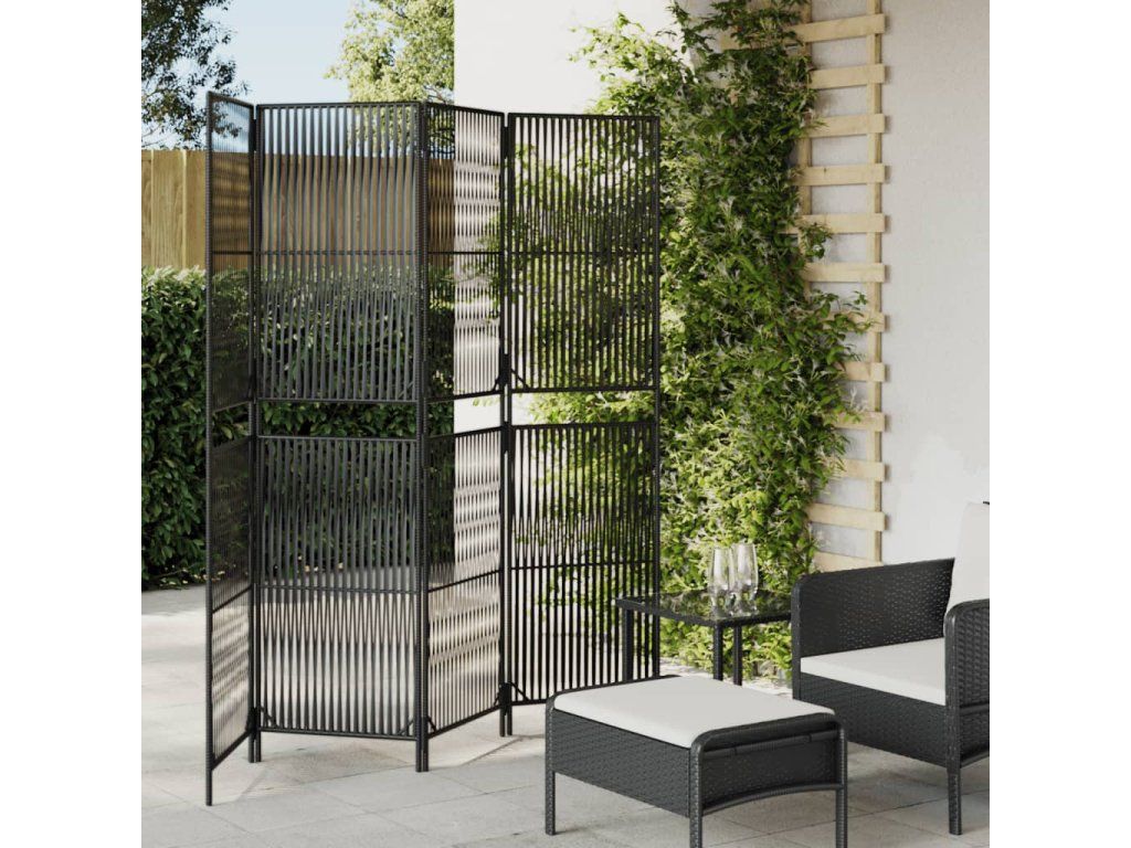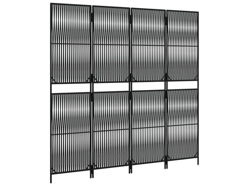 Dělící stěna 4 panely černá polyratan 365376