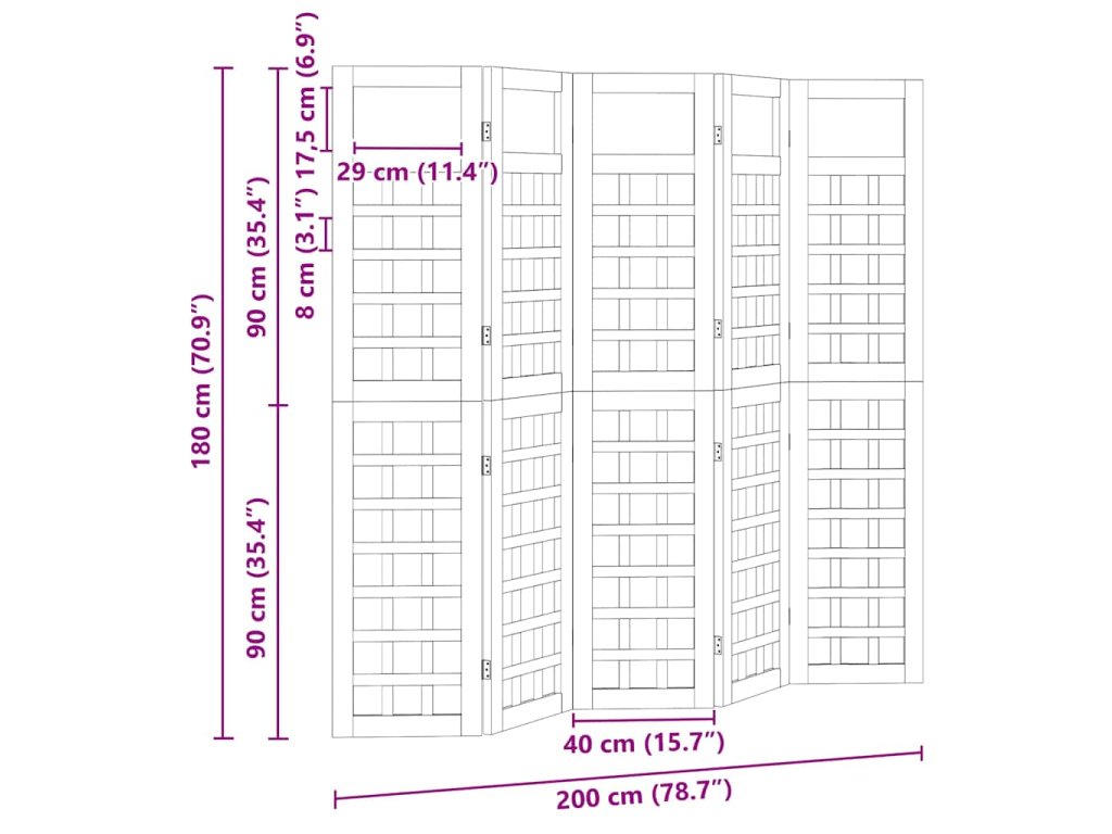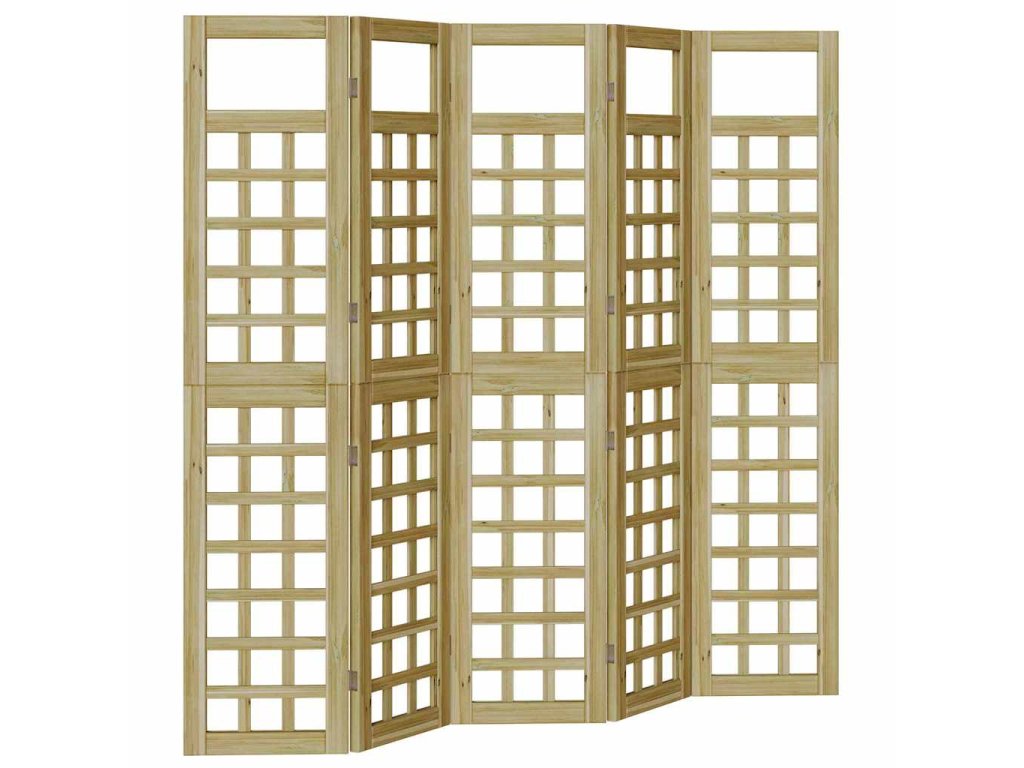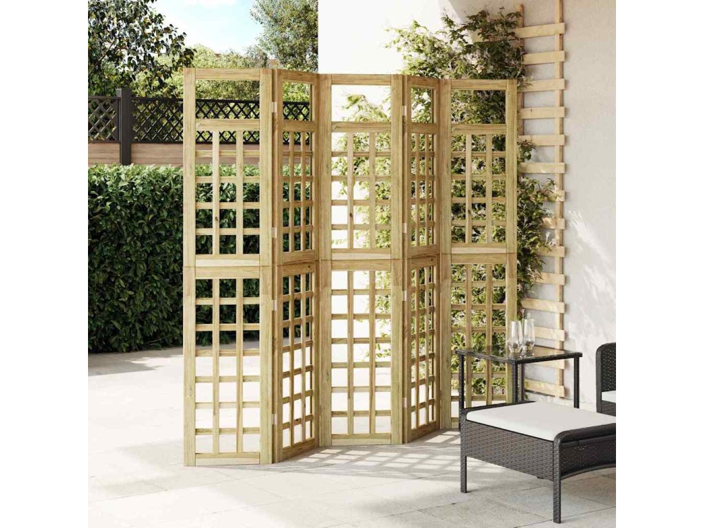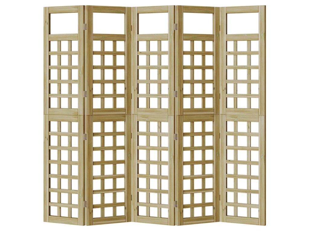 - Masivní borové dřevo Tato obrazovka je vyrobena z odolného borového dřeva, které jí dodává sílu a trvanlivost. Materiál zaručuje odolnost vůči různým podmínkám, a proto je ideální na použití uvnitř i venku. Jeho přirozený vzhled dodává vašemu prostoru sofistikovaný nádech.