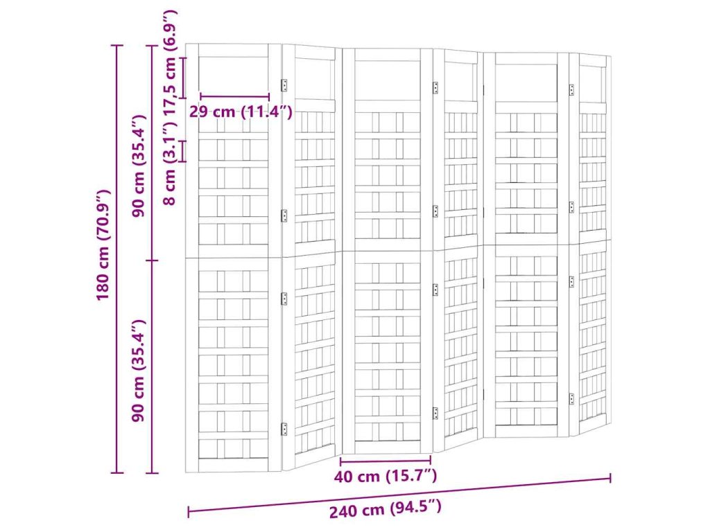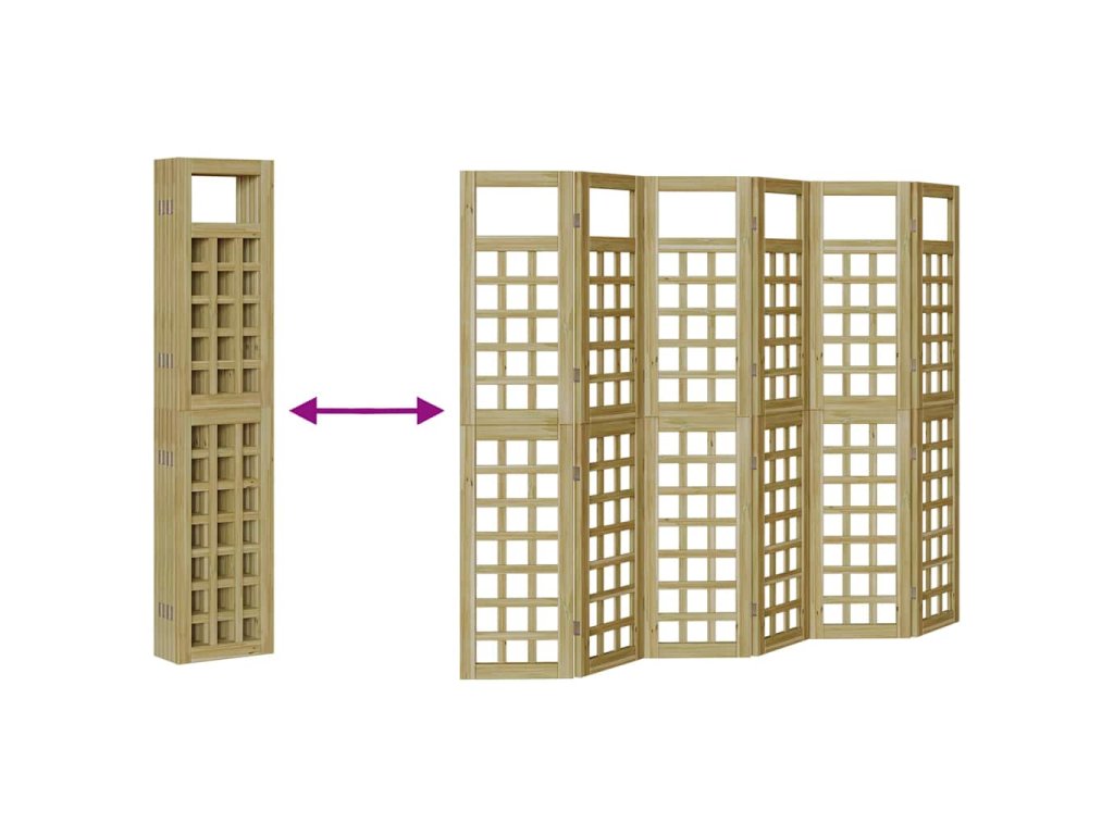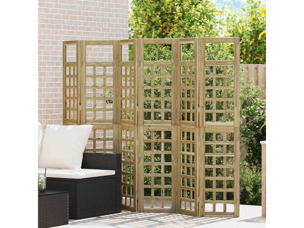 - Masivní borové dřevo Tato obrazovka je vyrobena z odolného borového dřeva, které jí dodává sílu a trvanlivost. Materiál zaručuje odolnost vůči různým podmínkám, a proto je ideální na použití uvnitř i venku. Jeho přirozený vzhled dodává vašemu prostoru sofistikovaný nádech.