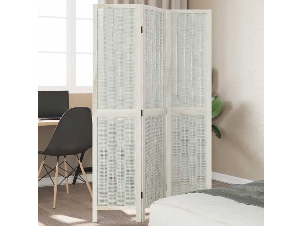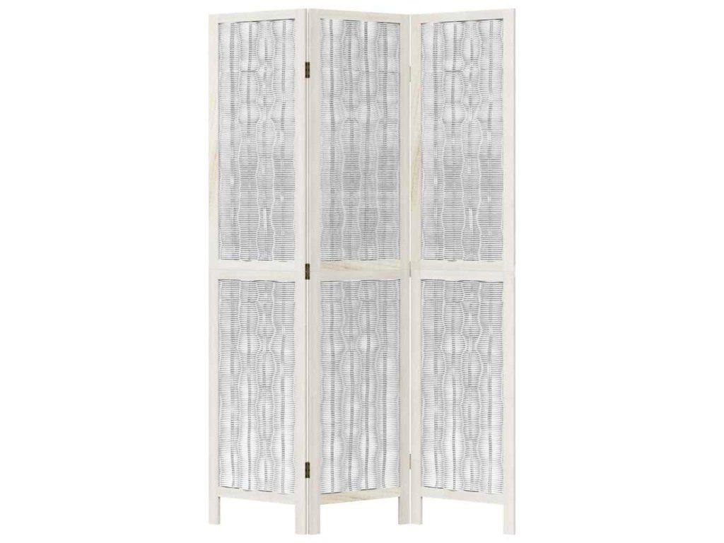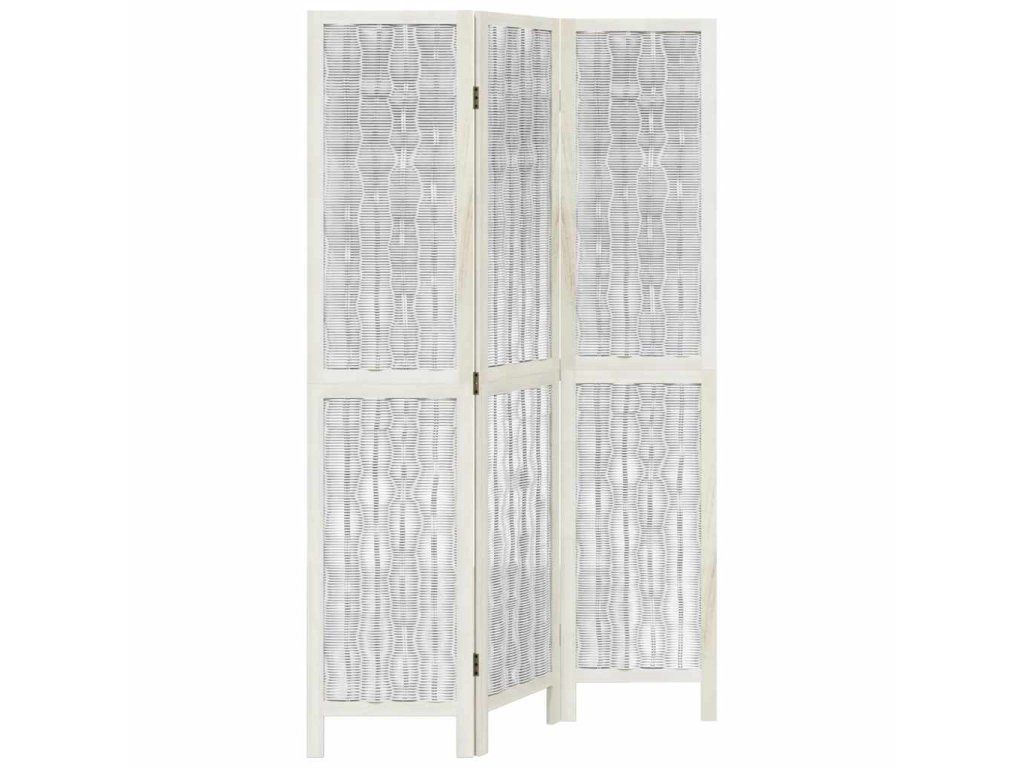 Paraván 3dílný bílý masivní dřevo pavlovnie 358670