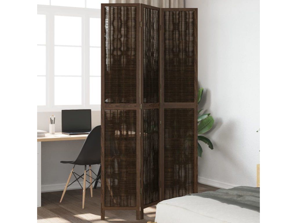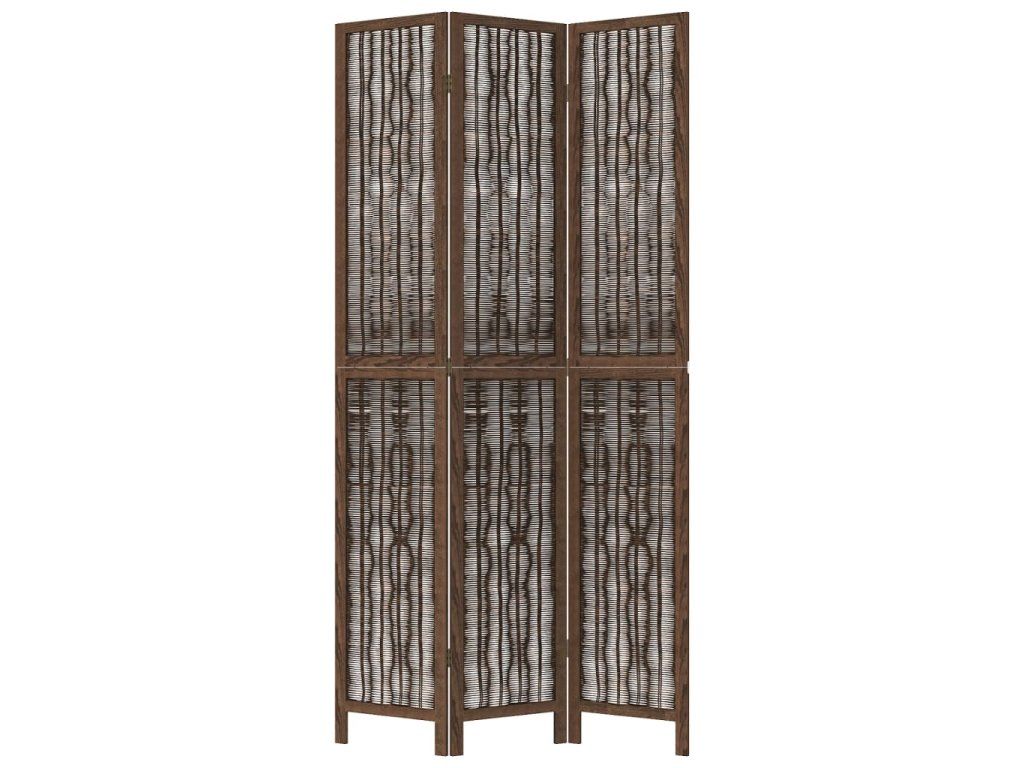 Paraván 3dílný tmavě hnědý masivní dřevo pavlovnie 358656