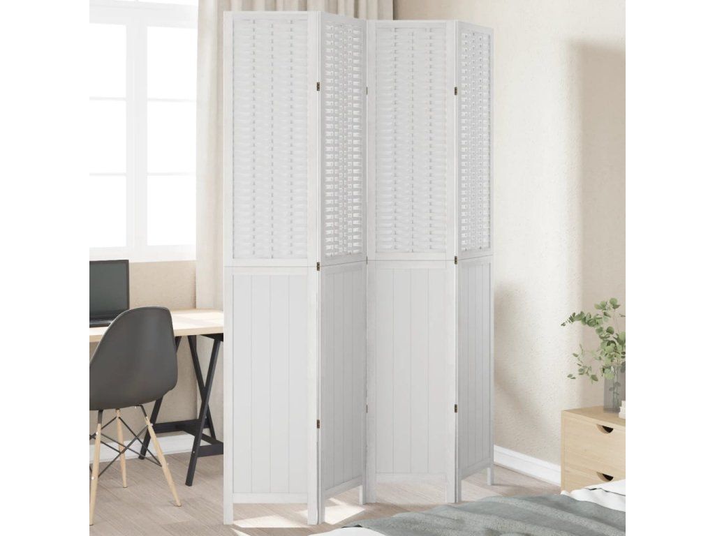 Paraván 4dílný bílý masivní dřevo pavlovnie 358724