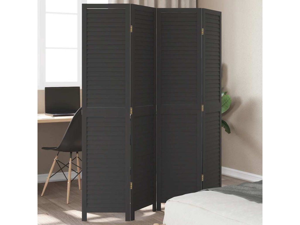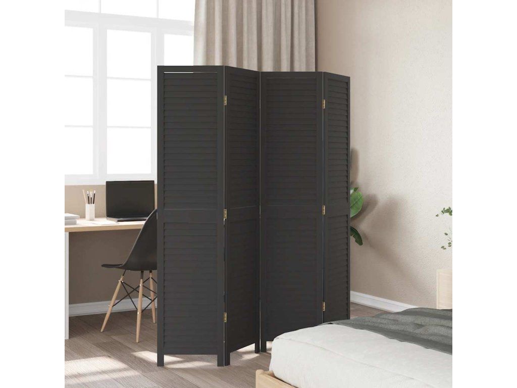 Paraván 4dílný černý masivní dřevo pavlovnie 358850