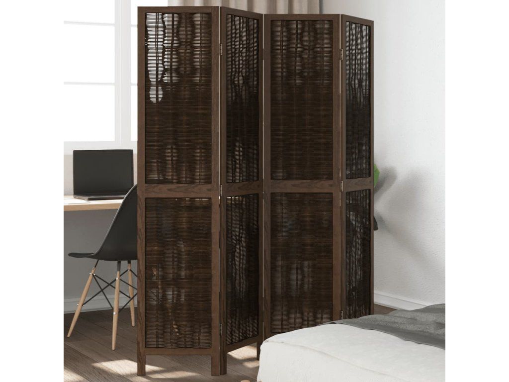 Paraván 4dílný tmavě hnědý masivní dřevo pavlovnie 358658