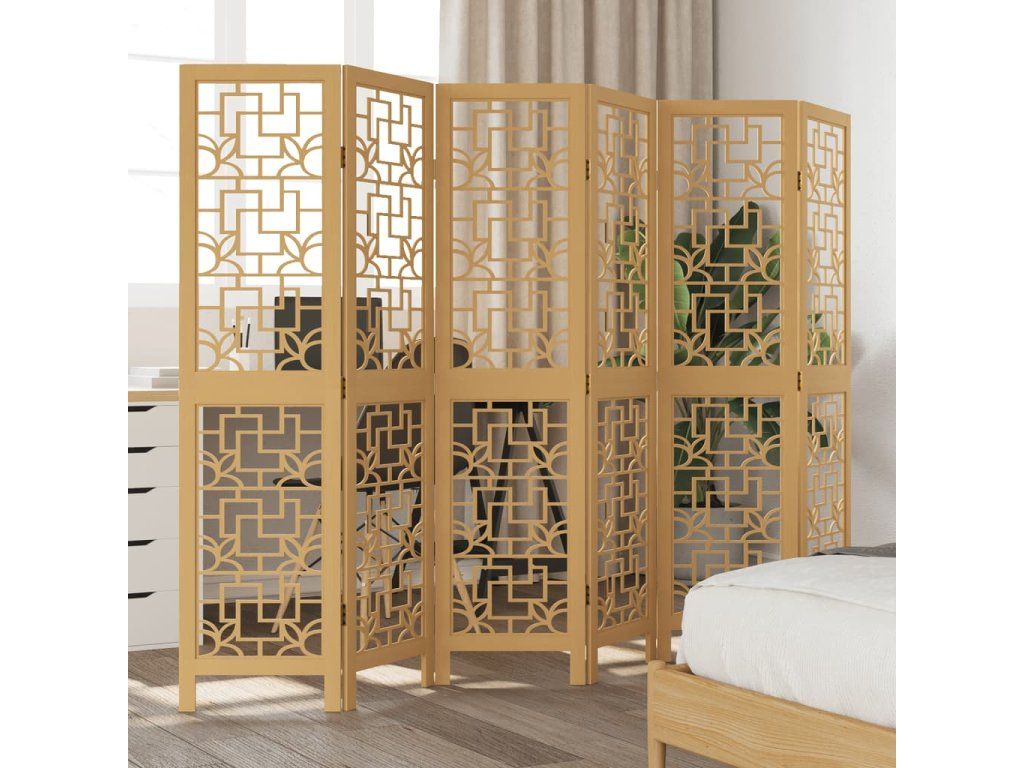 Paraván 6dílný hnědý masivní dřevo pavlovnie 358873