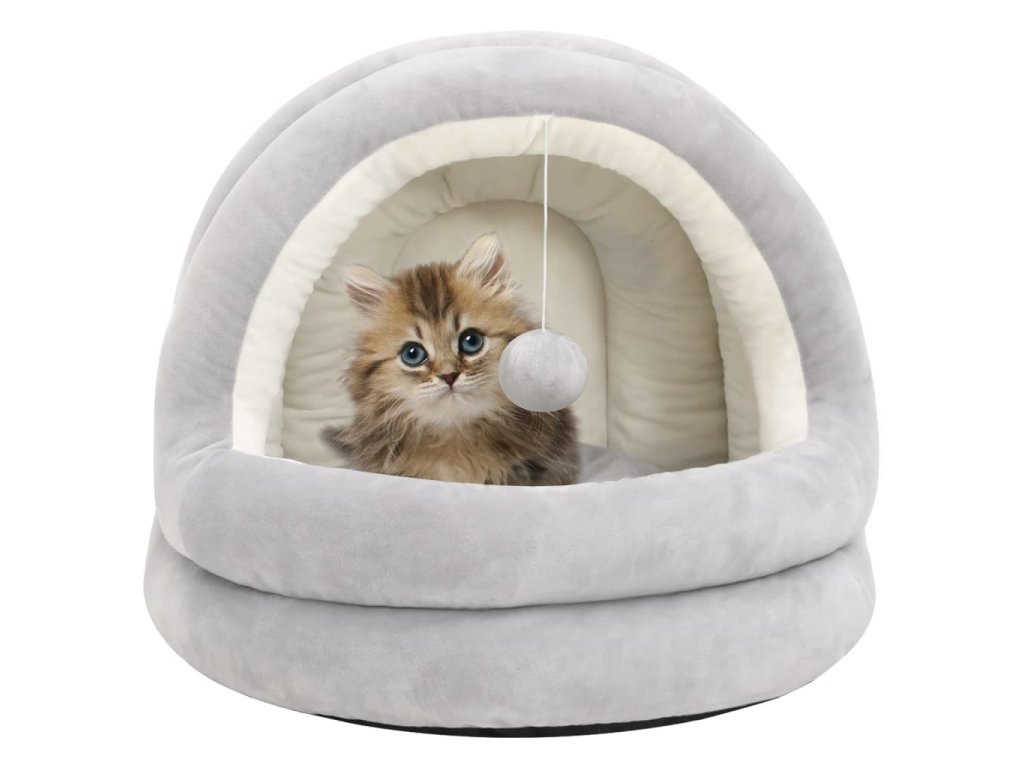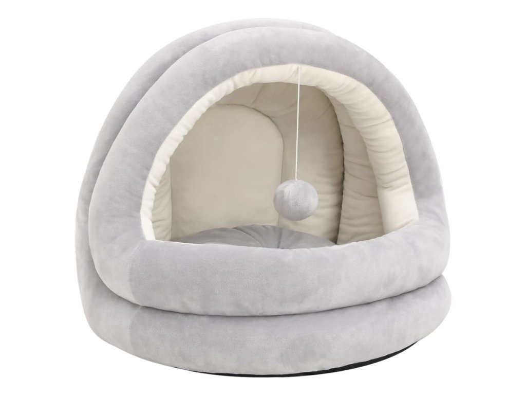 Pelíšek pro kočku 40 x 40 x 35 cm šedý a krémový 171397