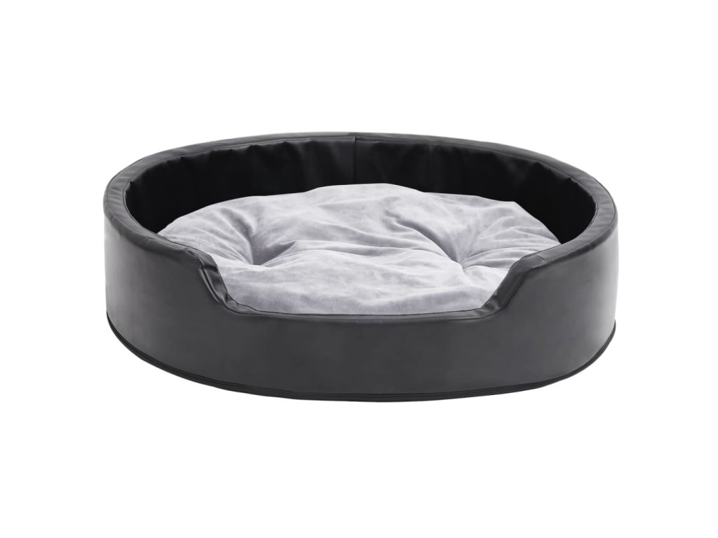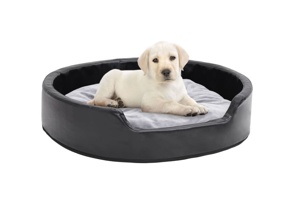 Pelíšek pro psy černý a šedý 79 x 70 x 19 cm plyš a umělá kůže 171254