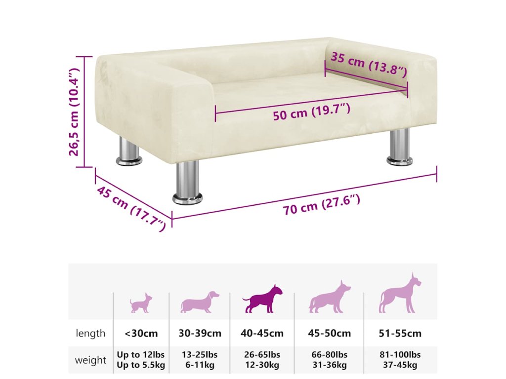 Pelíšek pro psy krémový 70 x 45 x 26,5 cm samet 171924