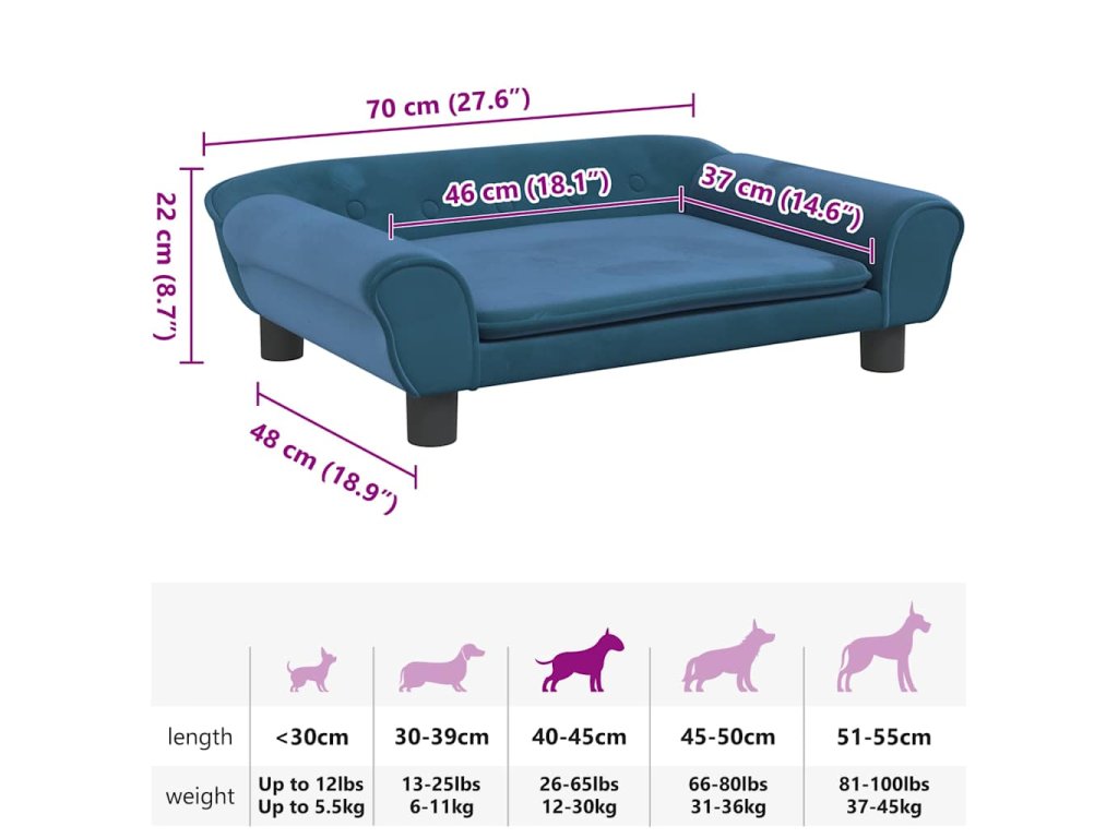 - Pohodlný a měkký materiál: Pohovka pro domácí mazlíčky je polstrovaná silným a měkkým pěnovým molitanem a potažená sametem, takže vašemu mazlíčkovi poskytne dostatečnou oporu a skvělé pohodlí, když si bude chtít odpočinout.