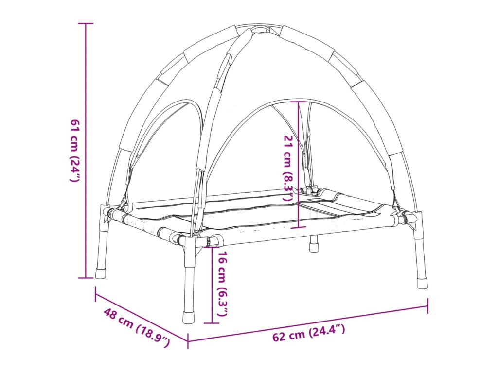 - Pevný a stabilní rám: Ocelový rám s práškovým nástřikem zajišťuje pevnost a dlouhou životnost vyvýšeného pelíšku. Čtyři protiskluzové gumové nožičky zvyšují stabilitu.